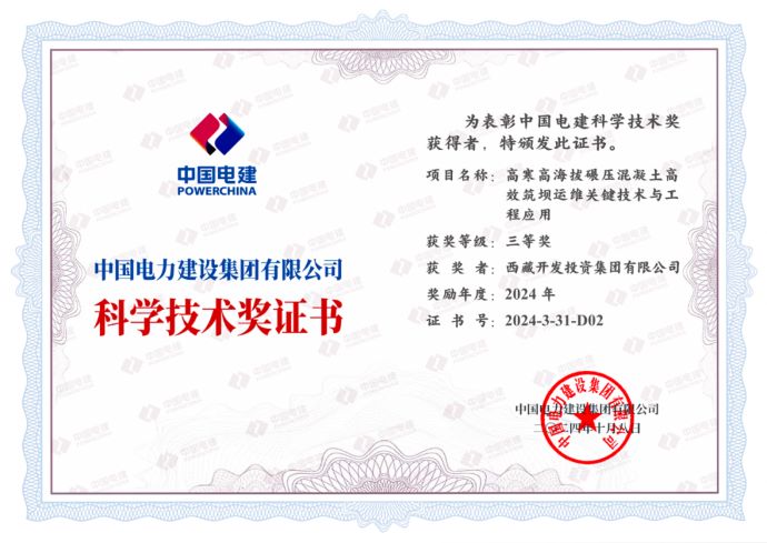 日前,中國電建集團(tuán)公布了2024年度中國電建科學(xué)技術(shù)獎獲獎項目名單,西藏開投集團(tuán)果多水電站創(chuàng)新成果——“高寒高海拔碾壓混凝土高效筑壩關(guān)鍵技術(shù)與工程應(yīng)用”榮獲中國電建科學(xué)技術(shù)獎三等獎。