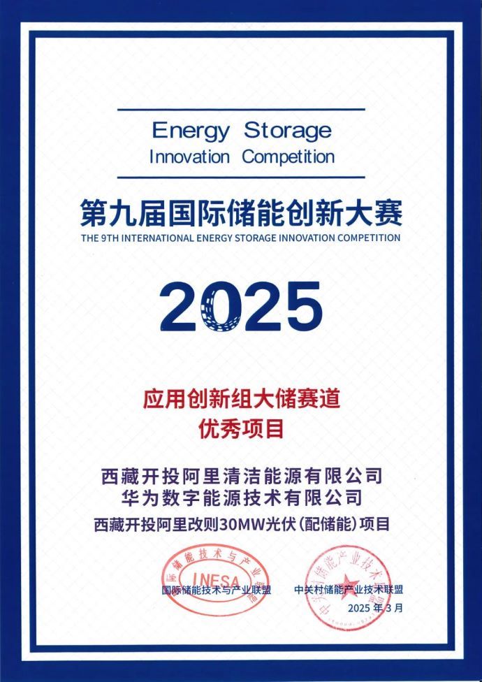 近日,第九屆國際儲能創(chuàng)新大賽在首都國際會展中心舉行,西藏開投阿里改則30MW光伏(配儲能)項目脫穎而出,榮獲“應用創(chuàng)新組大儲賽道優(yōu)秀項目”獎項。