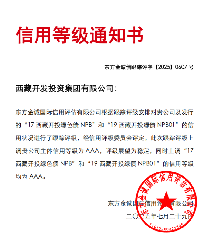 西藏首家!西藏開(kāi)投集團(tuán)獲評(píng)AAA主體信用等級(jí)