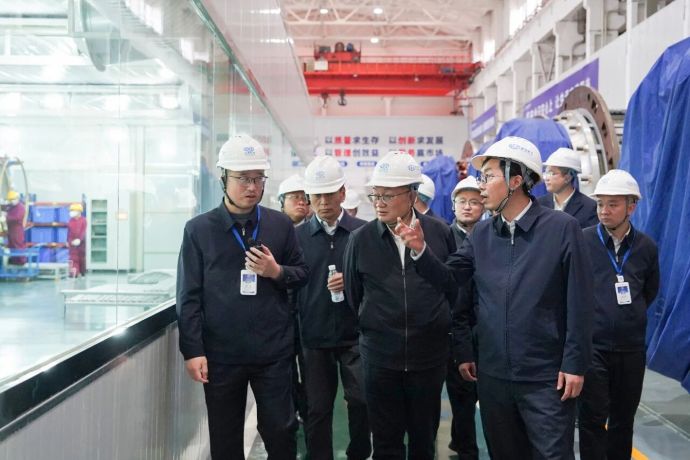 調(diào)研期間,祁騰武一行先后赴東方電機(jī)重跨車間、金模沖剪分廠,東方汽輪機(jī)工業(yè)透平總裝車間、葉片數(shù)字化黑燈生產(chǎn)線,東方鍋爐氫能示范園、容器一分廠等廠區(qū),實(shí)地了解其生產(chǎn)工藝、核心技術(shù)落地應(yīng)用等情況。