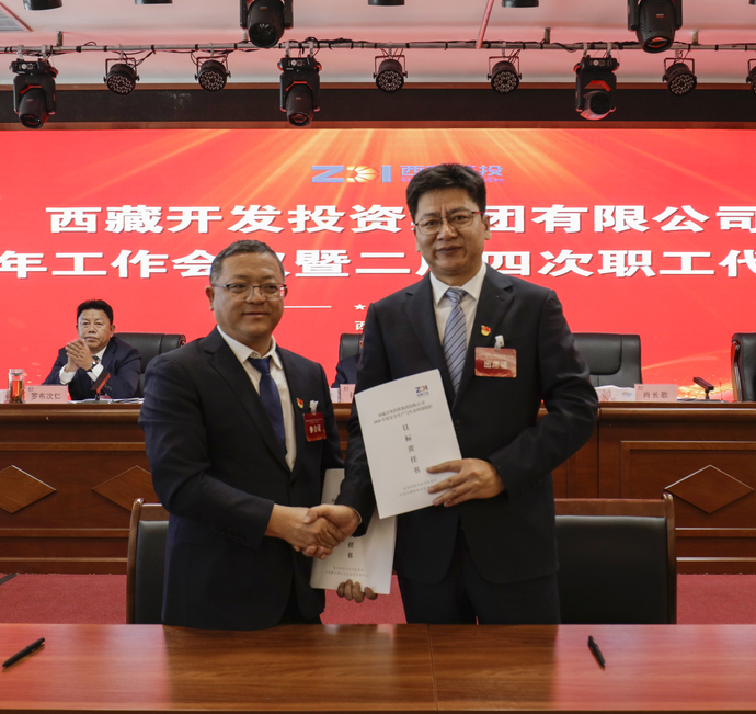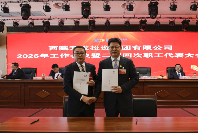 會上,集團(tuán)管理方首席代表肖長歌與集團(tuán)職工方首席代表羅布次仁簽訂了《集體合同》及專項(xiàng)附屬集體合同。肖長歌代表集團(tuán)與各部門、各單位代表簽訂了今年的目標(biāo)責(zé)任書。