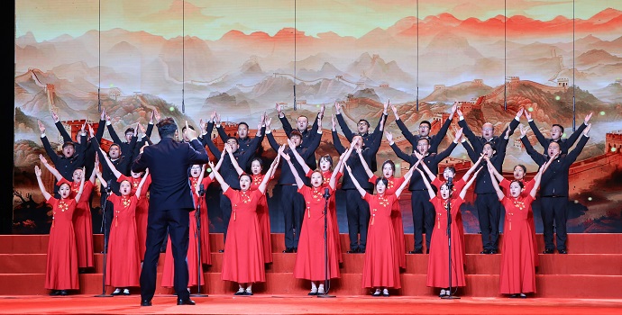 當(dāng)晚的現(xiàn)場,集團(tuán)公司合唱隊(duì)的演唱充滿了激情與力量,以激昂的節(jié)奏和磅礴的氣勢,深情謳歌了黨的豐功偉績,唱出了家國情懷,將對偉大祖國的深情祝福和前進(jìn)道路上的奮斗精神融入歌聲之中,展現(xiàn)了國企職工不忘初心、闊步前行的昂揚(yáng)姿態(tài),贏得了臺下觀眾熱烈的掌聲與贊譽(yù)。