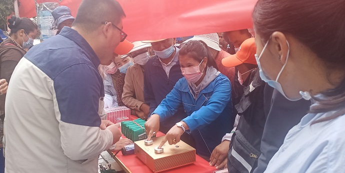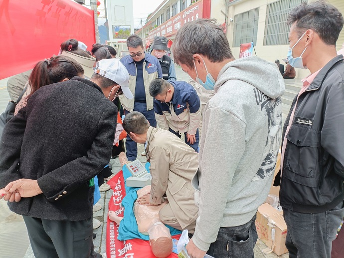 為保證活動實效,嘎堆水電公司提前籌劃、精心準備了形式多樣的活動素材,現(xiàn)場不僅懸掛了“實施安全生產(chǎn)法 人人事事保安全”的宣傳標語,還設(shè)置了咨詢臺、安全展板等,志愿者們向現(xiàn)場群眾講解并發(fā)放了《安全生產(chǎn)月宣傳雨傘、文化帽》《安全知識進萬家系列—急救知識宣傳冊》等四類共計150份安全生產(chǎn)政策法規(guī)、應(yīng)急避險和自救互救方法等方面的宣傳資料。在實操展示環(huán)節(jié),志愿者用心肺復(fù)蘇模擬器和觸電感受器向現(xiàn)場群眾講解并演示了急救知識—心肺復(fù)蘇操作方法和體驗人體觸電的真實感受。