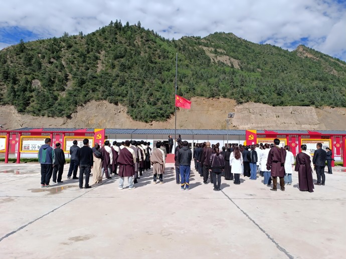 7月1日,果多水電公司黨支部應(yīng)柴維鄉(xiāng)人民政府黨委邀請(qǐng),參加柴維鄉(xiāng)黨委政府組織的“慶祝中國共產(chǎn)黨成立102周年暨‘七·一’建黨日”活動(dòng),活動(dòng)在莊嚴(yán)的升旗儀式中拉開序幕,全鄉(xiāng)各村居、企事業(yè)單位在場人員全體肅立,伴著莊嚴(yán)神圣的國歌,五星紅旗冉冉升起。