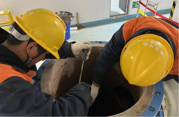 (運(yùn)行維護(hù)人員進(jìn)行設(shè)備檢修工作 楊偲攝)