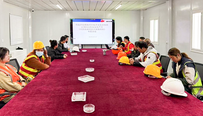 西藏開投安多縣土若125MW光伏+50MW光熱一體化項目施工現(xiàn)場處于青藏高原海拔4600米以上,含氧量較低,為讓項目各參建單位人員對高原病有一個正確的認識,掌握常見高原病防治、高原衛(wèi)生與保健知識,消除對高原工作的緊張憂慮心理,養(yǎng)成良好的生活習(xí)慣,以最好的狀態(tài)投入工作,6月11日,那曲河水電公司組織監(jiān)理及總承包單位在施工現(xiàn)場營地開展高原病知識講座。
