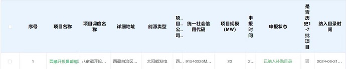 6月21日,國(guó)家電網(wǎng)公布2024年第六批列入可再生能源發(fā)電補(bǔ)貼項(xiàng)目名單,其中西藏開投八宿光伏電站發(fā)電項(xiàng)目成功納入國(guó)家光伏電價(jià)補(bǔ)貼目錄。