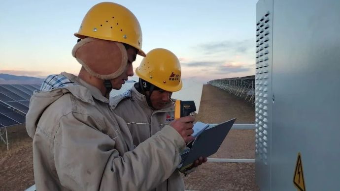為了電站的安全穩(wěn)定運行,改則光儲電站運維人員每天必須要做的就是開展設(shè)備巡檢,從中控室出發(fā)前往高壓開關(guān)室、升壓站、光伏區(qū)、生活區(qū)等關(guān)鍵位置,對變壓器、SVG、逆變器、儲能箱變、光伏板等設(shè)備依次進行全方位排查。“冬季電站運維面臨的最大挑戰(zhàn)就是大風(fēng),改則光儲電站地勢較高,冬天幾乎每天都是大風(fēng)天氣,有時候風(fēng)吹得人都站不穩(wěn),刮得人臉上生疼。越是這種天氣越要認(rèn)真排查有沒有光伏板被風(fēng)吹掉了、設(shè)備運行是否正常、組件螺栓有沒有松動……生活上的一些用電等隱患也要仔細(xì)排查。如果發(fā)現(xiàn)問題,我們第一時間記錄并處理。”西藏開投電力工程公司副總經(jīng)理孫繼東說。