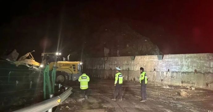 現(xiàn)場工作人員深夜進行主汛期庫周公路清通作業(yè)。