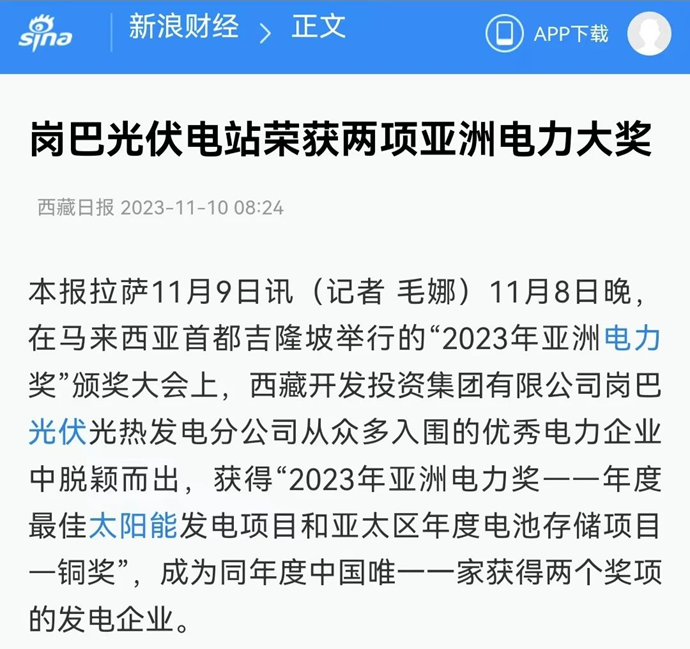 科技日?qǐng)?bào)、西藏日?qǐng)?bào)、西藏日?qǐng)?bào)客戶端等多個(gè)媒體報(bào)道了《西藏開發(fā)投資集團(tuán)有限公司崗巴光伏電站榮獲2023年度兩項(xiàng)亞洲電力大獎(jiǎng)》