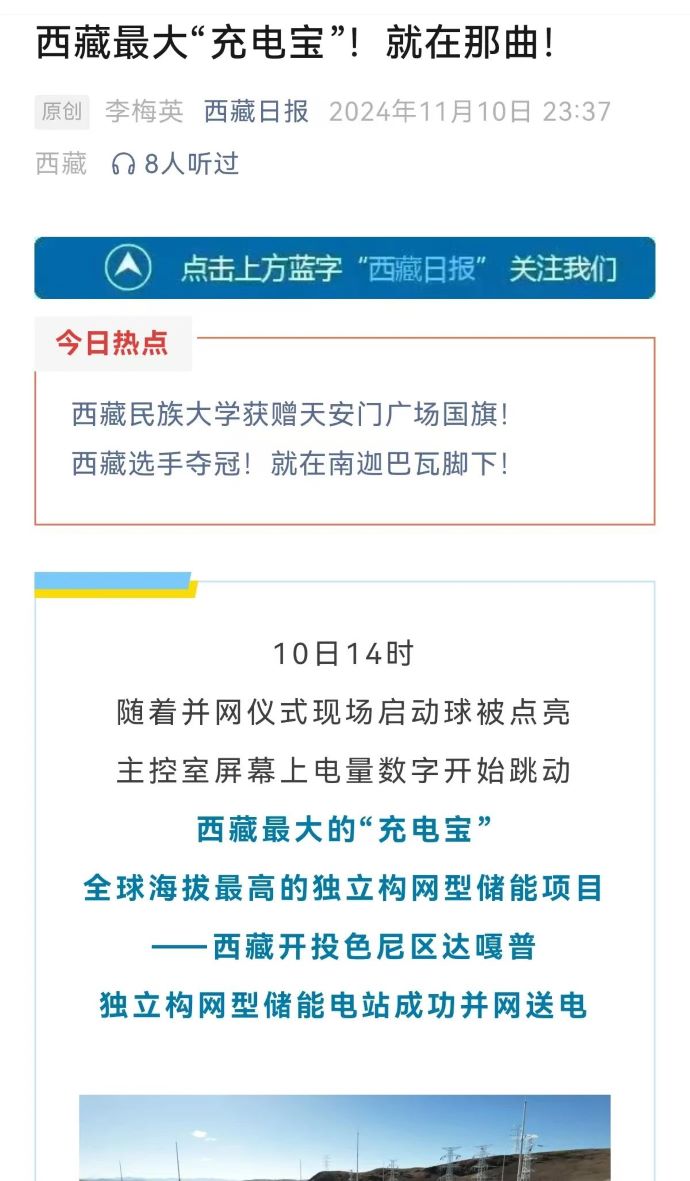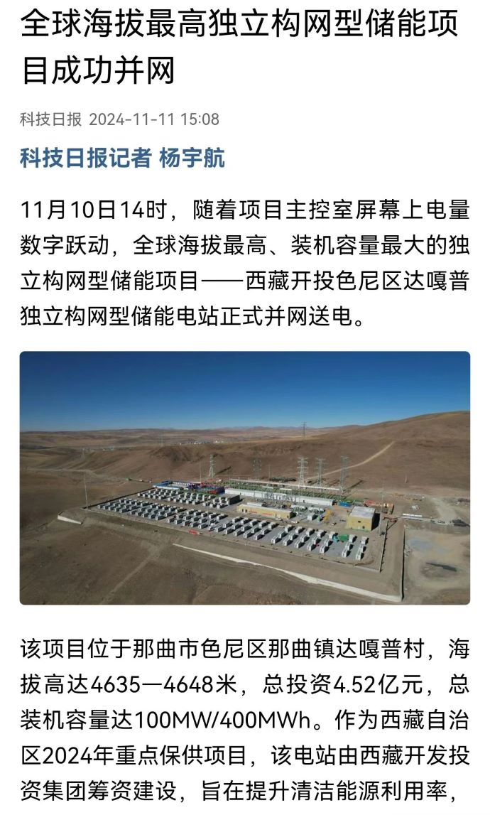實力刷屏!各級媒體聚焦報道西藏開投色尼區(qū)獨立構(gòu)網(wǎng)型儲能項目