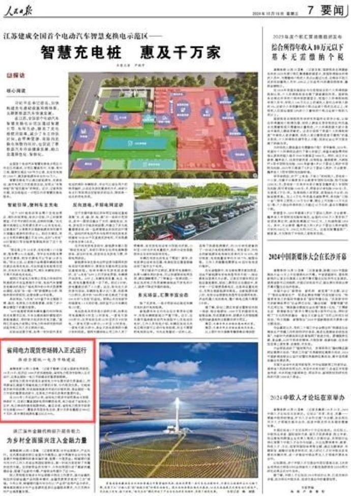 人民日報:省間電力現(xiàn)貨市場轉入正式運行 推動全國統(tǒng)一電力市場建設