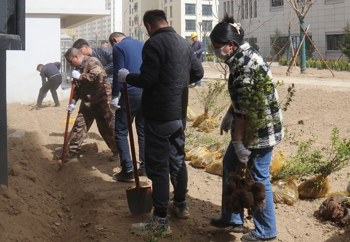 經(jīng)過一個多小時緊張忙碌,共栽種金葉女貞150㎡。一棵棵新栽的樹苗迎風挺立,為初春大地和能源基地增添了新的生機與活力。