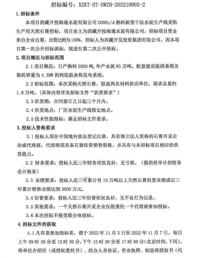 采購生產(chǎn)用天然石膏二次招標(biāo)公告