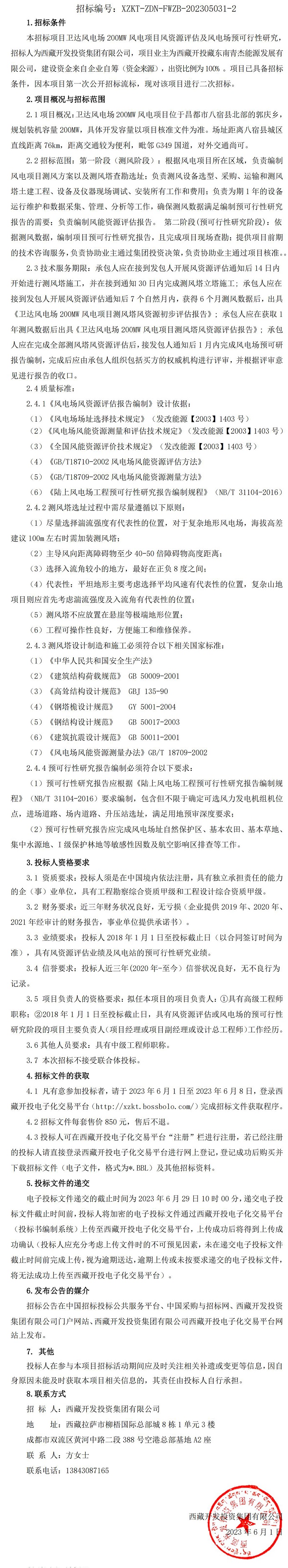 風(fēng)電場(chǎng)預(yù)可行性研究招標(biāo)公告(第二次)