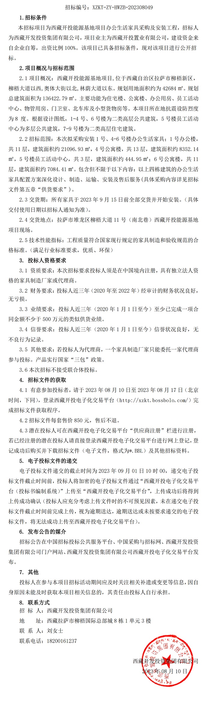 西藏開(kāi)投能源基地項(xiàng)目辦公生活家具采購(gòu)及安裝工程