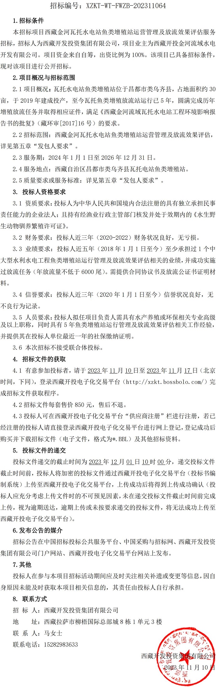 西藏金河瓦托水電站魚類增殖站運(yùn)營管理及放流效果評估服務(wù)招標(biāo)公告
