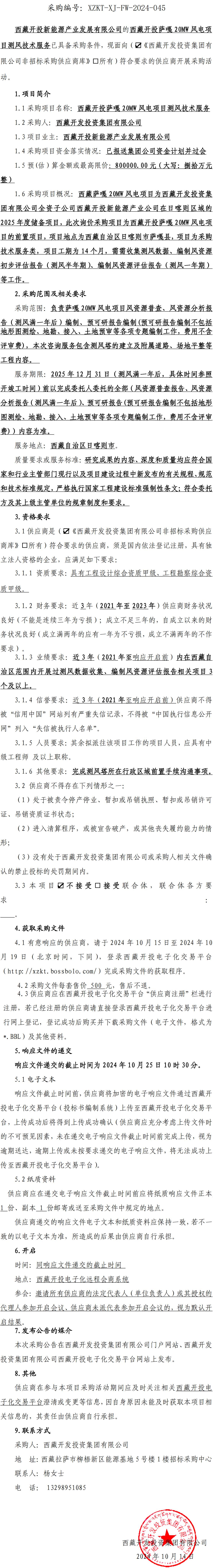 西藏開(kāi)投薩嘎 20MW 風(fēng)電項(xiàng)目測(cè)風(fēng)技術(shù)服務(wù)詢(xún)價(jià)采購(gòu)公告