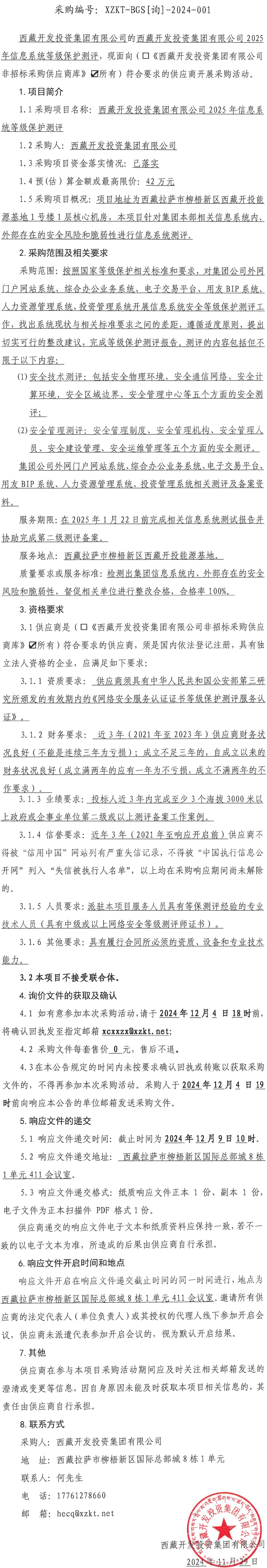 西藏開(kāi)發(fā)投資集團(tuán)有限公司2025年信息系統(tǒng)等級(jí)保護(hù)測(cè)評(píng)詢價(jià)采購(gòu)公告