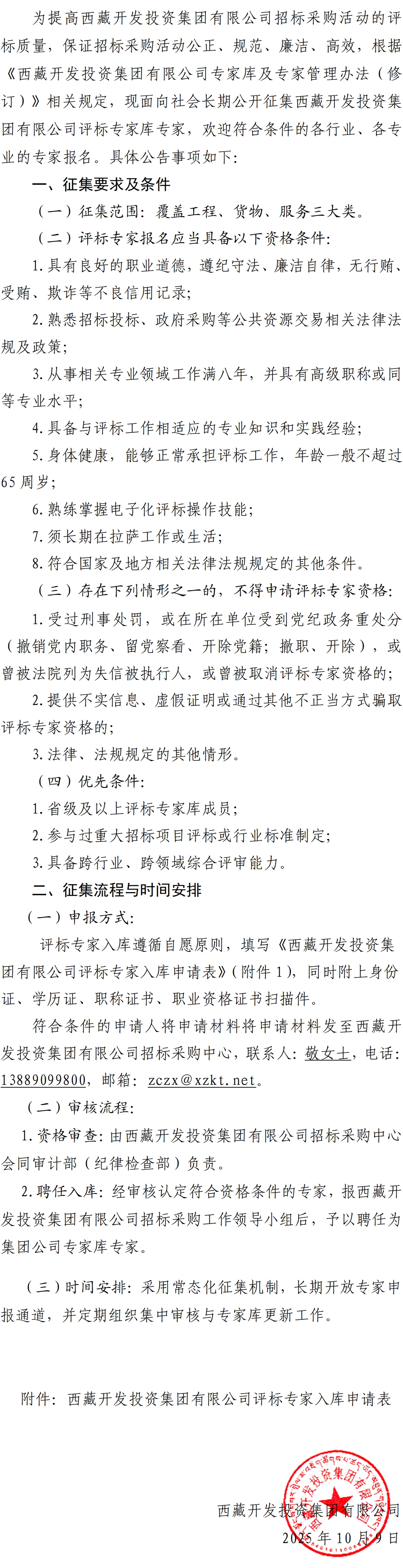 西藏開發(fā)投資集團(tuán)有限公司評標(biāo)專家?guī)鞂<艺骷?/strong>