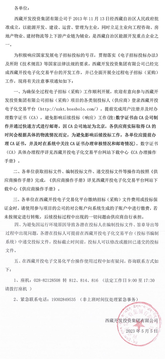 關于西藏開投電子化交易平臺操作使用方面注意事項的通知
