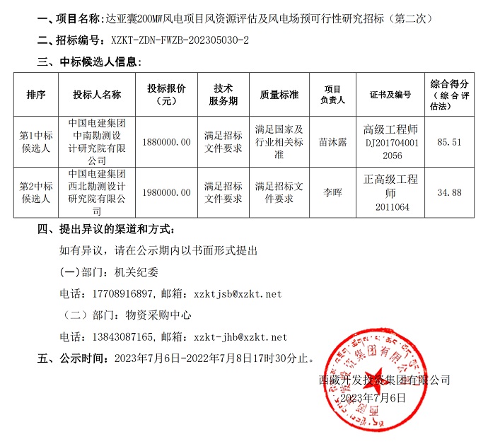 中標候選人公示(達亞囊測風(fēng))更正