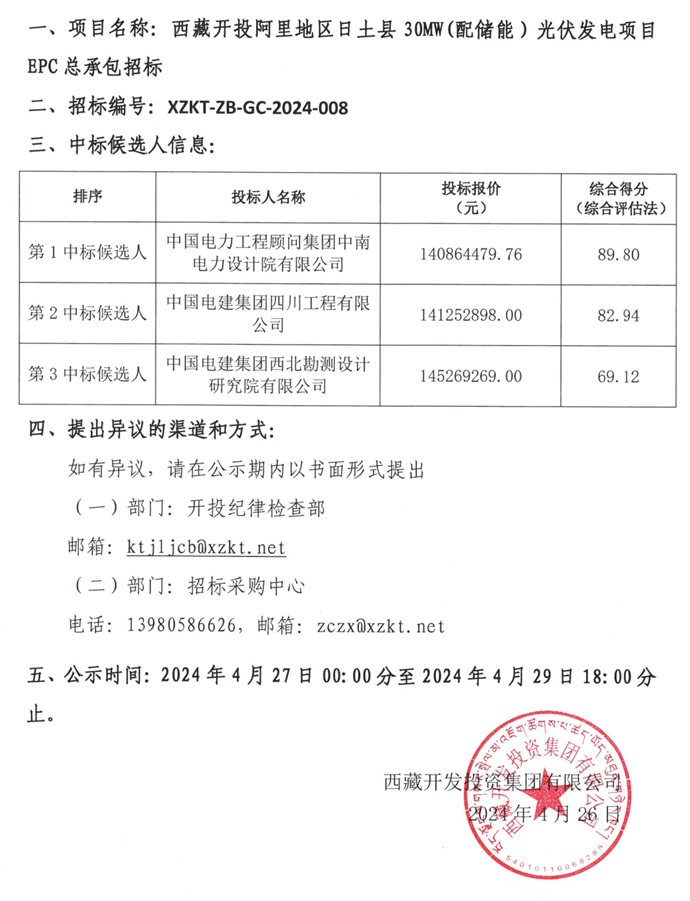 中標(biāo)候選人公示